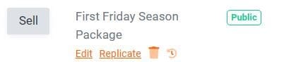 Editing packages is similar to editing events. From your Package Manager page, click “Edit” or the trash can icon for the desired package. You can also replicate your package or see any revisions to your package by clicking the clock icon.